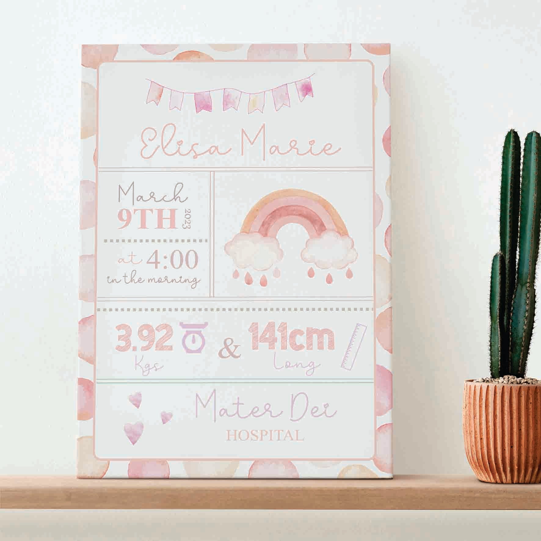 This chart is a perfect gift or keepsake for any newborn. The design features all of a baby’s essentials, including the date of birth, their name and weight.