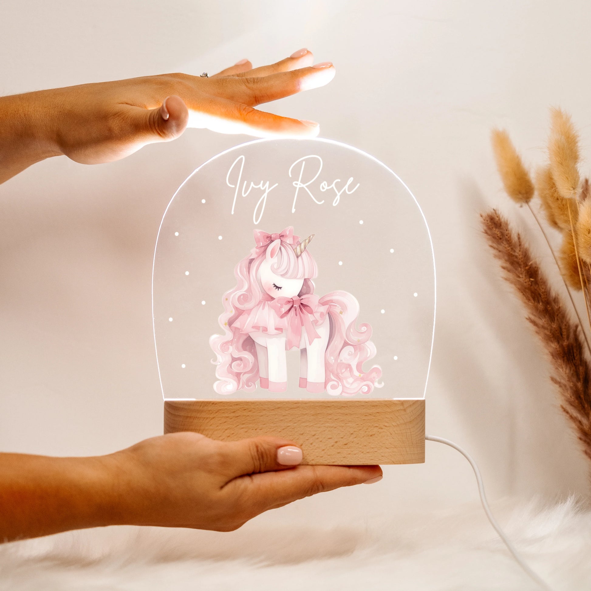 Bring a touch of magic to your child’s room with our enchanting personalised night lamps. Made with durable acrylic and set on a sturdy wooden base, these lamps softly illuminate the space, creating a warm, comforting glow perfect for bedtime. Whether it's their name or favourite design, each lamp can be fully personalised to reflect their unique style and personality. Ideal for nurseries, playrooms, or as a thoughtful gift!