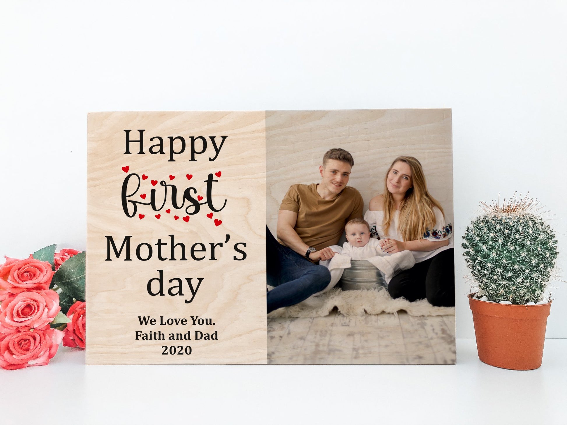Embark on the journey of motherhood with our exquisite standing wooden plaque, the ideal tribute for a first Mother's Day celebration! Crafted with care from durable wood, this timeless piece stands proudly at 30cm by 21cm, a symbol of the remarkable journey ahead.