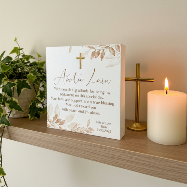 Celebrate a special Holy Confirmation with this personalised wooden block.