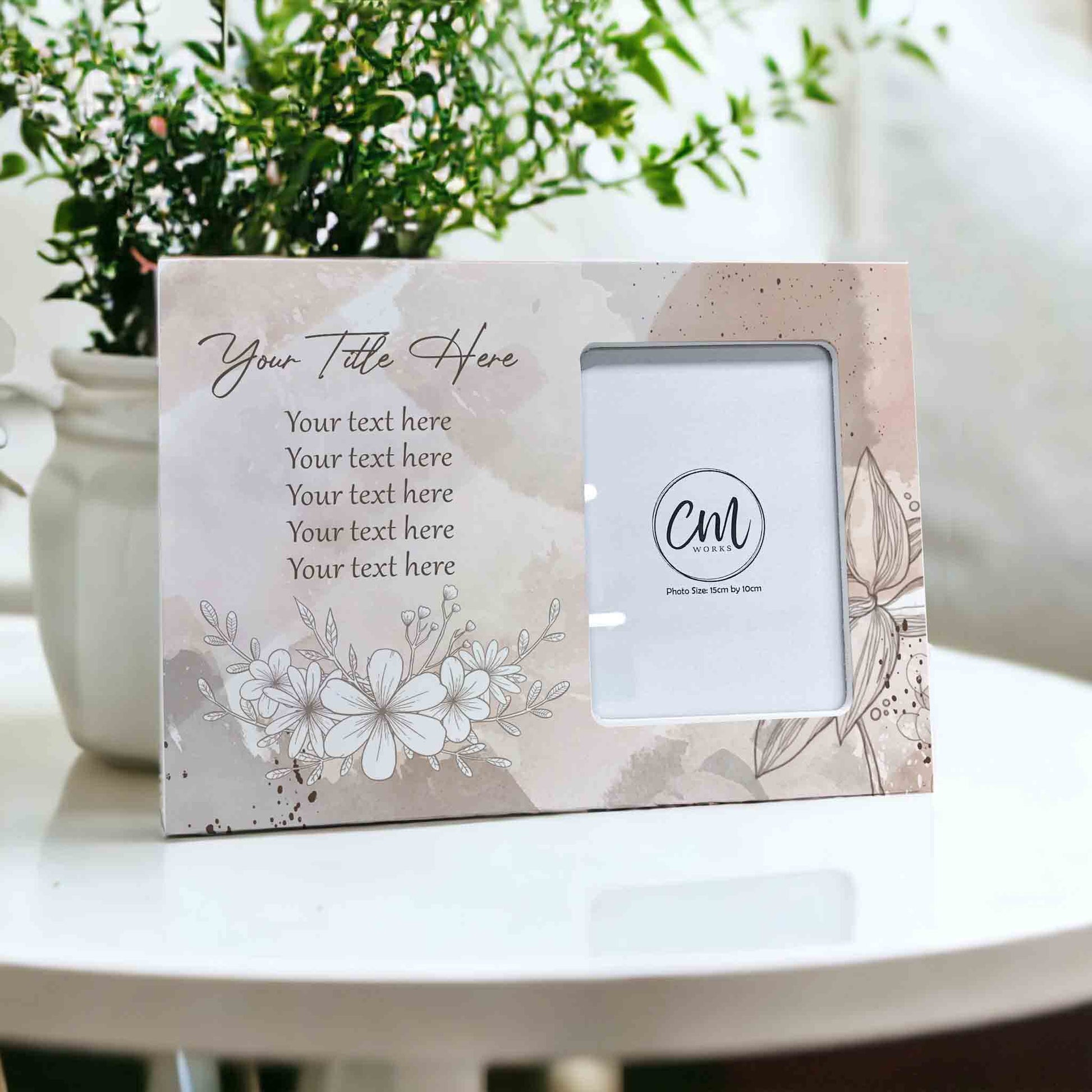 Elevate Mother's Day gifting with our personalised wooden photo frame adorned with watercolor floral designs. Measuring generously to accommodate a photo size of 15cm by 10cm, this exquisite frame serves as a stunning centerpiece for capturing cherished memories.