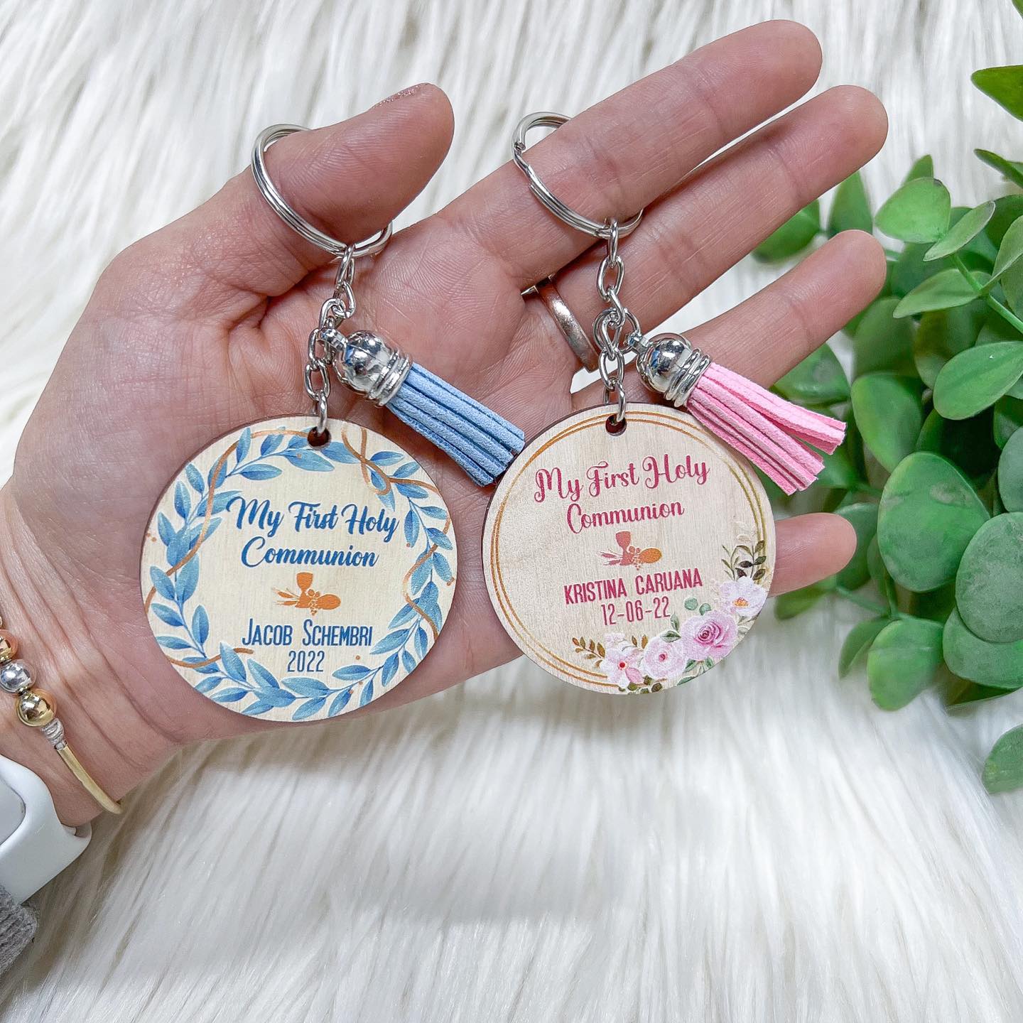 These come packed in a Holy communion themed package (transparent bag plus Keychain card holder)