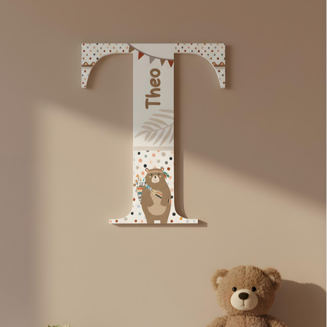 These letters can be done with the character of your choice. They are printed digitally, and then hand finished by our skilled team. These standing letters are ideal as a nursery decoration or a cake table décor.