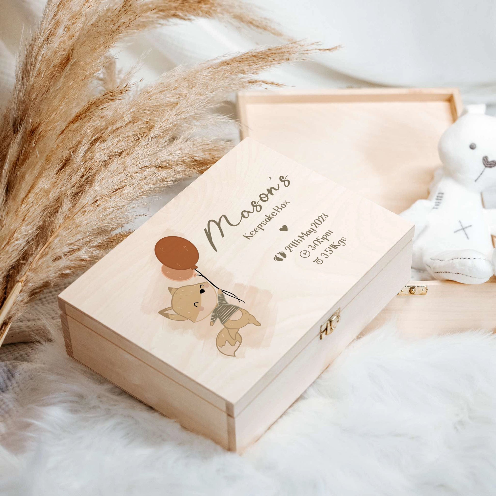 Keep treasured memories safe in our beautifully crafted personalised wooden keepsake boxes. Perfect for storing baby’s first moments, special trinkets, or cherished items, these boxes make a thoughtful, timeless gift. Each box is custom-made with your chosen name or design, making it a unique addition to any nursery or child’s room.