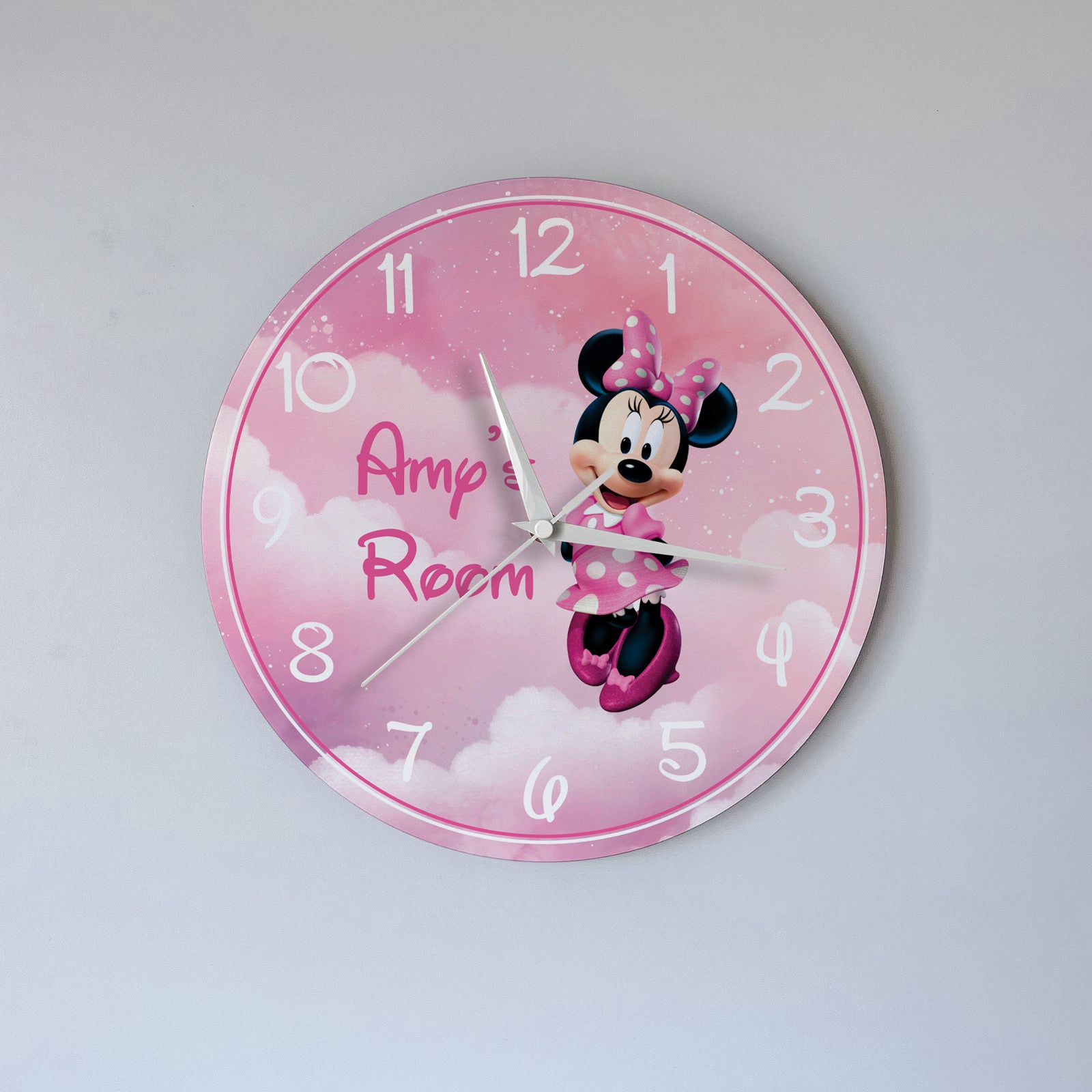 Our beautiful wooden wall clocks for kids are sure to add a smile to any kid's face. They can be done with any picture, character, pattern and can be personalized with any name or text. Good quality wooden clocks that will last a long time and look good in your kids room, ideally as a birthday gift or as hanging decoration.