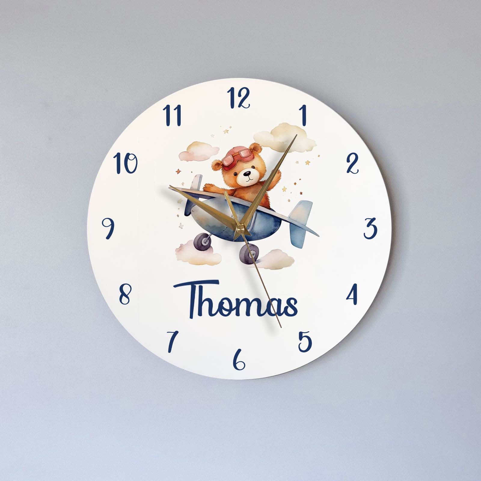 Our beautiful wooden wall clocks for kids are sure to add a smile to any kid's face. They can be done with any picture, character, pattern and can be personalized with any name or text. Good quality wooden clocks that will last a long time and look good in your kids room, ideally as a birthday gift or as hanging decoration.