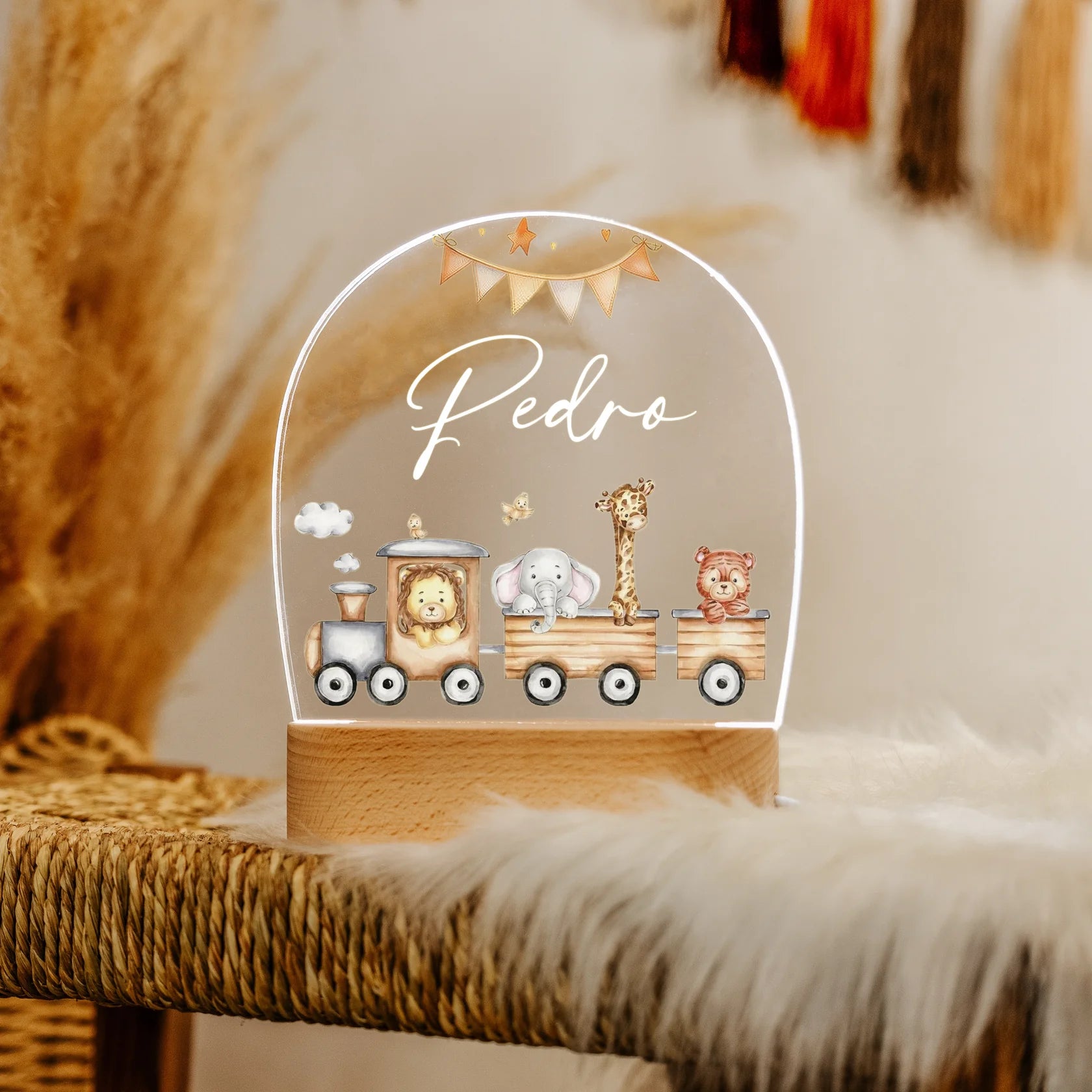 Bring a touch of magic to your child’s room with our enchanting personalised night lamps. Made with durable acrylic and set on a sturdy wooden base, these lamps softly illuminate the space, creating a warm, comforting glow perfect for bedtime. Whether it's their name or favourite design, each lamp can be fully personalised to reflect their unique style and personality. Ideal for nurseries, playrooms, or as a thoughtful gift!