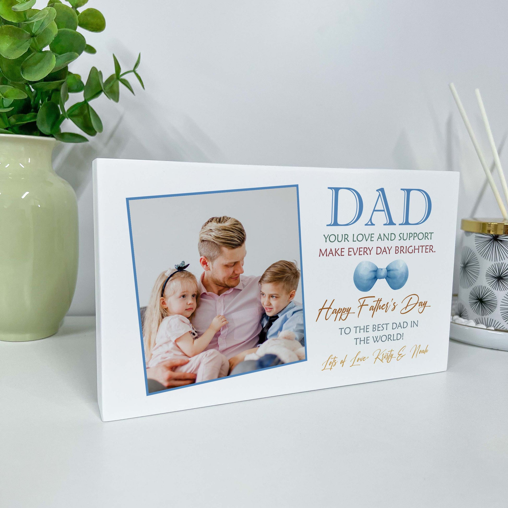 Celebrate your dad on Father's Day with our personalized wooden photo block. Customize it with a cherished photo, capturing precious moments shared together. Made from quality wood, this sentimental gift adds a warm and personal touch to his space. Show your love and appreciation with our custom wooden photo block, a heartfelt present for Father's Day.