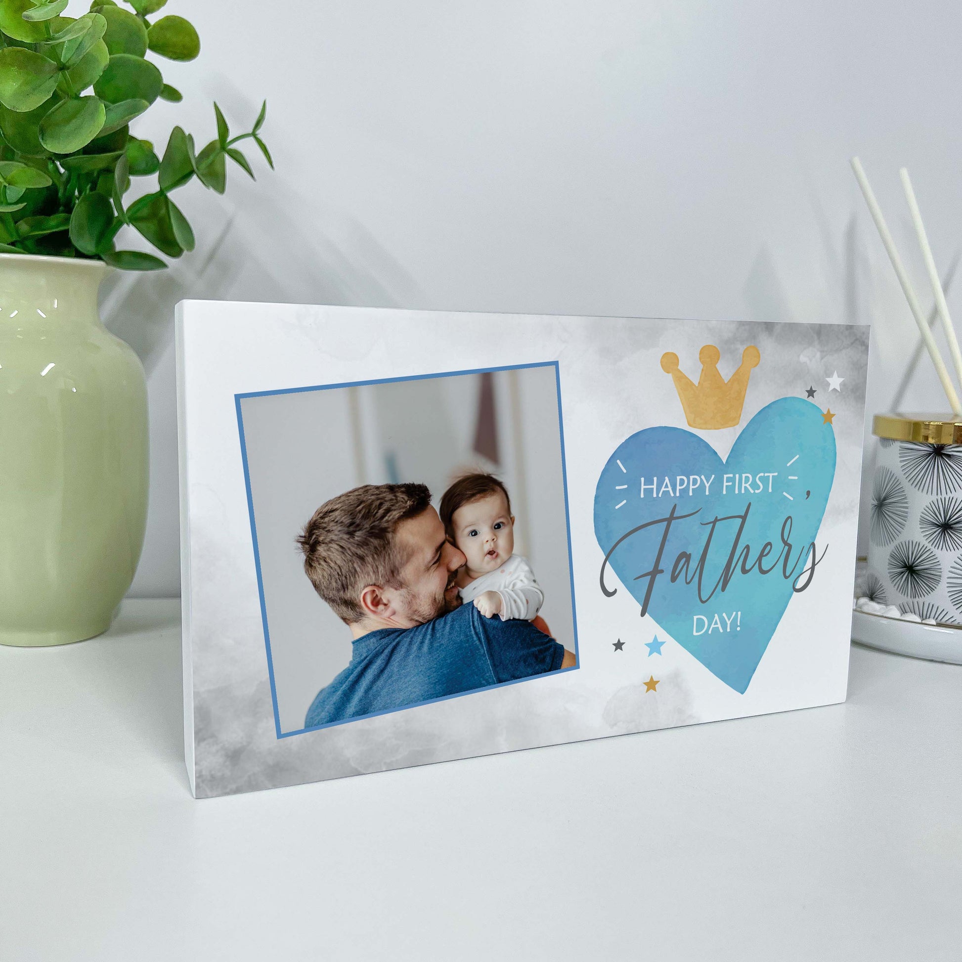 Celebrate your first Father's Day with our special wooden photo block. Customize it with a precious photo, capturing unforgettable moments with your little one. Crafted from quality wood, this sentimental gift adds a touch of warmth to any space. Mark this milestone and create a lasting memory with our personalized wooden photo block, the perfect keepsake for your first Father's Day.