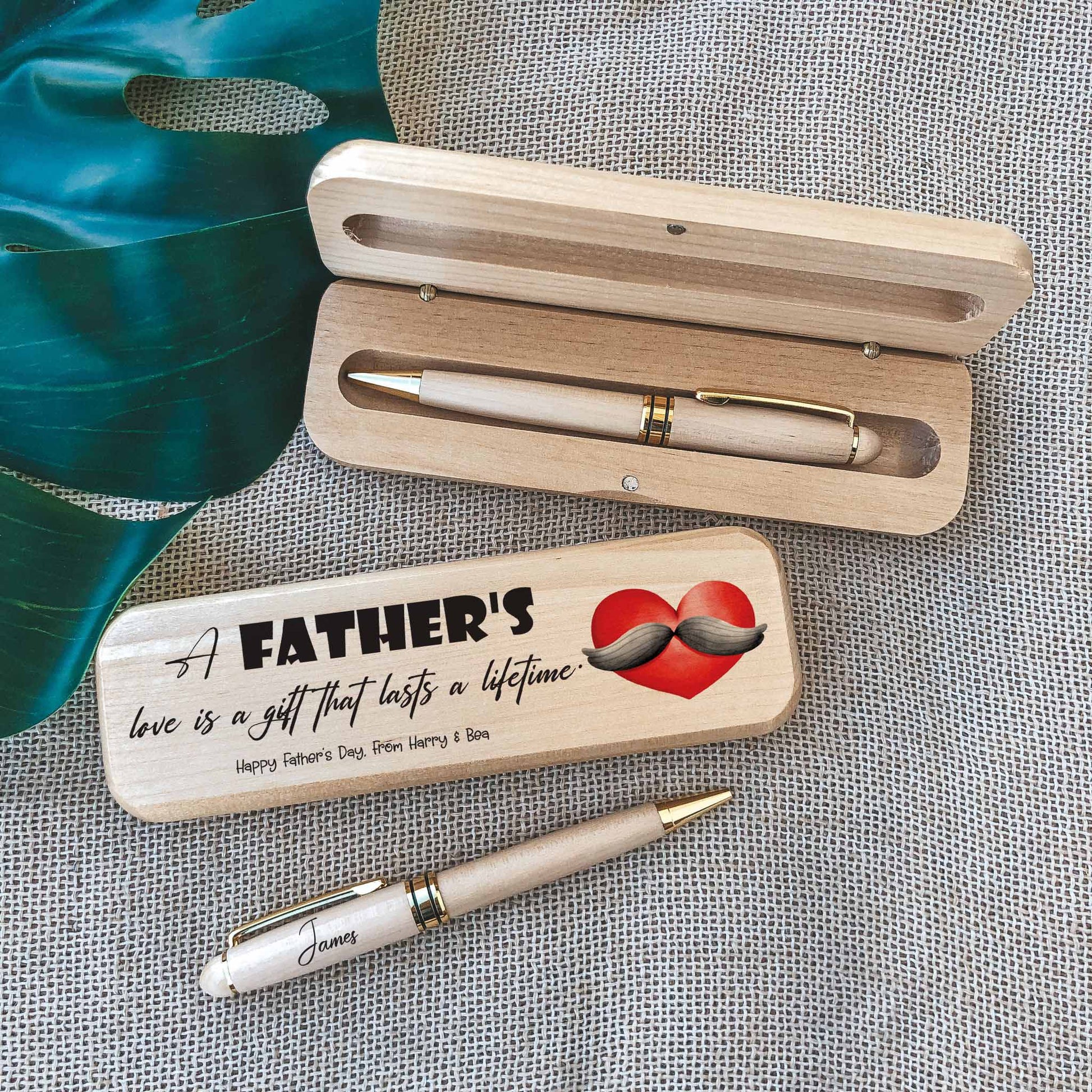 Make this Father's Day extra special with our wooden pen and case gift set. Carefully made from high-quality wood, this stylish pen is the perfect present. The matching case adds a touch of elegance and keeps the pen safe. Show your dad how much you care with this thoughtful and charming gift for Father's Day.